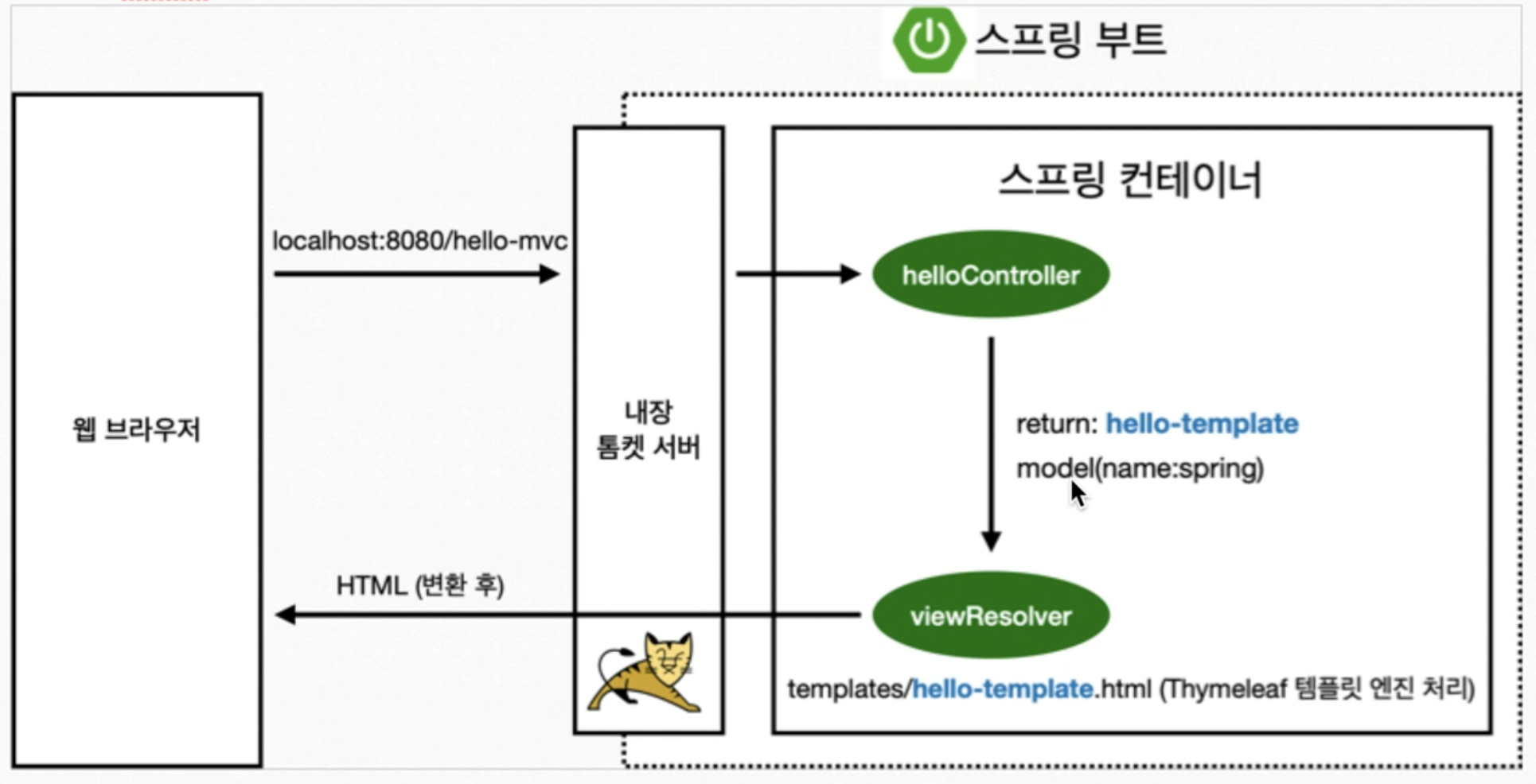 - viewResolver: 화면을 찾아서 처리 resources:templates/{viewName}.html