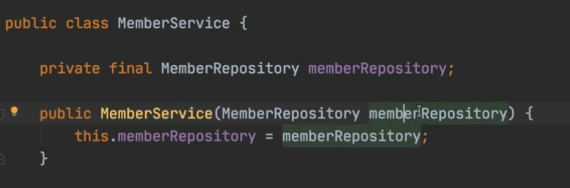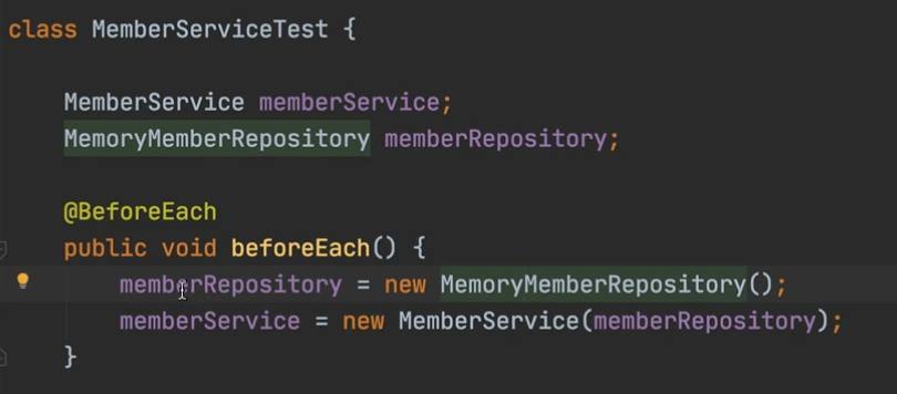 DI한 repository를 작성(외부에서 repository를 넣어준다, 아래 사진 참고)하면 같은 메모리 repository를 사용할 수 있다.