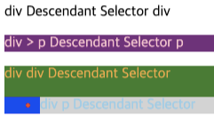 | 하위 선택자 | element element {} | 1단계 하위 요소(child)와 2단계 이상 하위요소(descendant)에 모두 적용. |