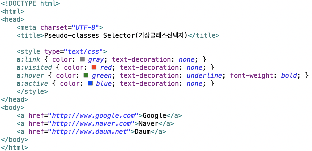 - CSS3에선 가상 클래스와 가상 엘리먼트 구별을 위해 double colon(::) 으로 대체.