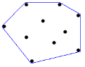 한글로는 볼록 껍질이라고 한다. 2차원 평면에 N개의 점이 주어졌을 때, 이들 중 몇 개의 점을 골라 볼록 다각형을 만드는데, 나머지 모든 점을 내부에 포함하도록 할 수 있다. 이것이 볼록 껍질이다. N = 10 이라고 할 때 한 예는 아래 사진과 같다.