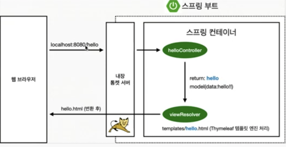 - viewResolver: 화면을 찾아서 처리 resources:templates/{viewName}.html